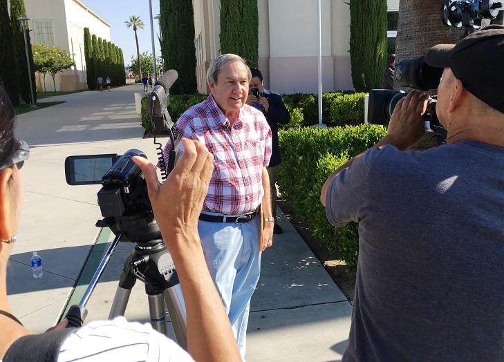 The flag is a gift to Fresno State President Joseph I. Castro and Fresno State from Bell, who graduated in 1959 with a bachelor’s degree in journalism. He earned a master’s degree in public administration at CSU Long Beach in 1978, a law degree from LaSalle University in Chicago and a Ph.D. in business administration at Georgetown University. He was a former adjunct professor at Fresno State and Princeton University.