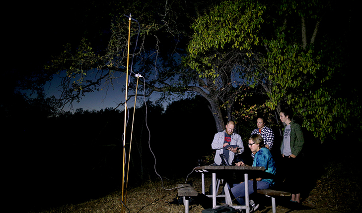 Moshier is one of two students capturing the calls in the parks and bringing the recordings back to campus for analysis. Professor Lent is using the education portion of a nearly $700,000 NSF Faculty Early Career Development grant he was awarded in 2015 to pay biology students to learn how to conduct computational research on the bat calls.